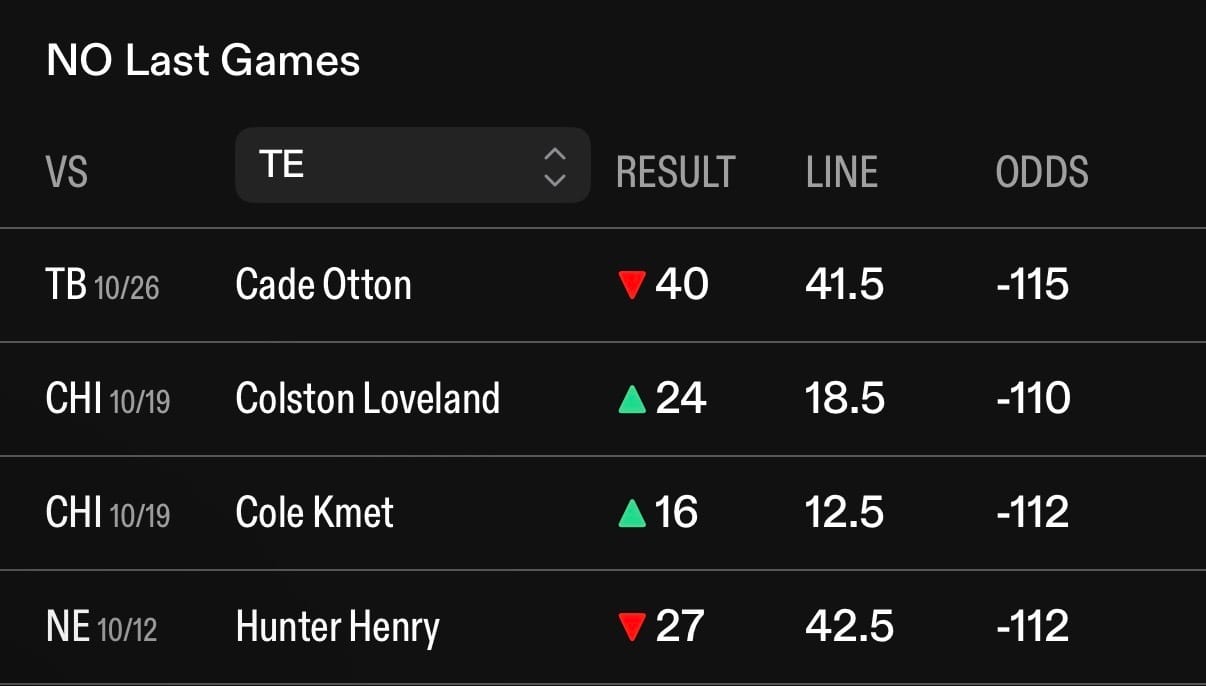 The Saints aren’t good at much, but they do allow the 9th fewest receiving yards per game. That does take an uptick with tight ends, where they’re ranked 15th. The last 4 tight ends to face New Orleans (over 3 games) have gone over this number.
