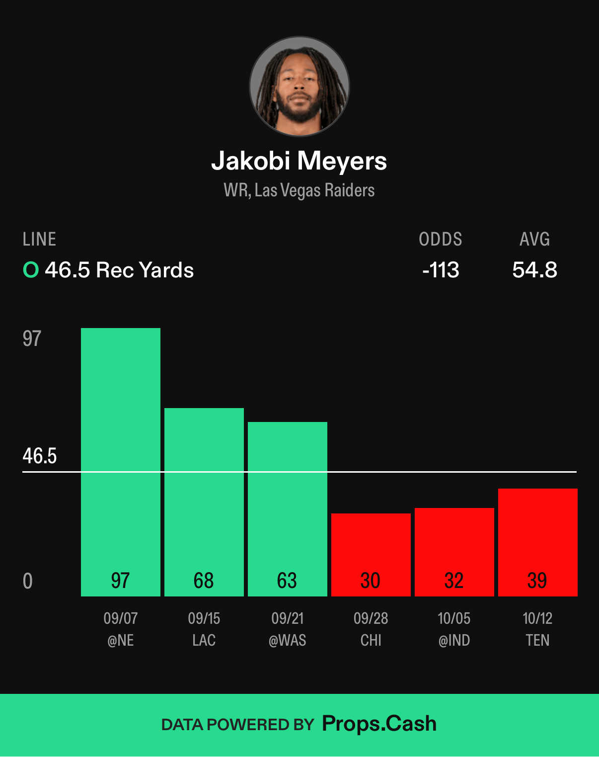 JAC @ LV: Jakobi Meyers, 46.5 Receiving Yards
