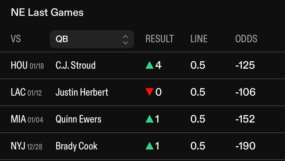 Laddering this to 2+ interceptions is not out of the question. Just a week ago, the Pats picked off CJ Stroud four times in their divisional win, and they’ve picked off 3 of the last 4 quarterbacks they’ve played.