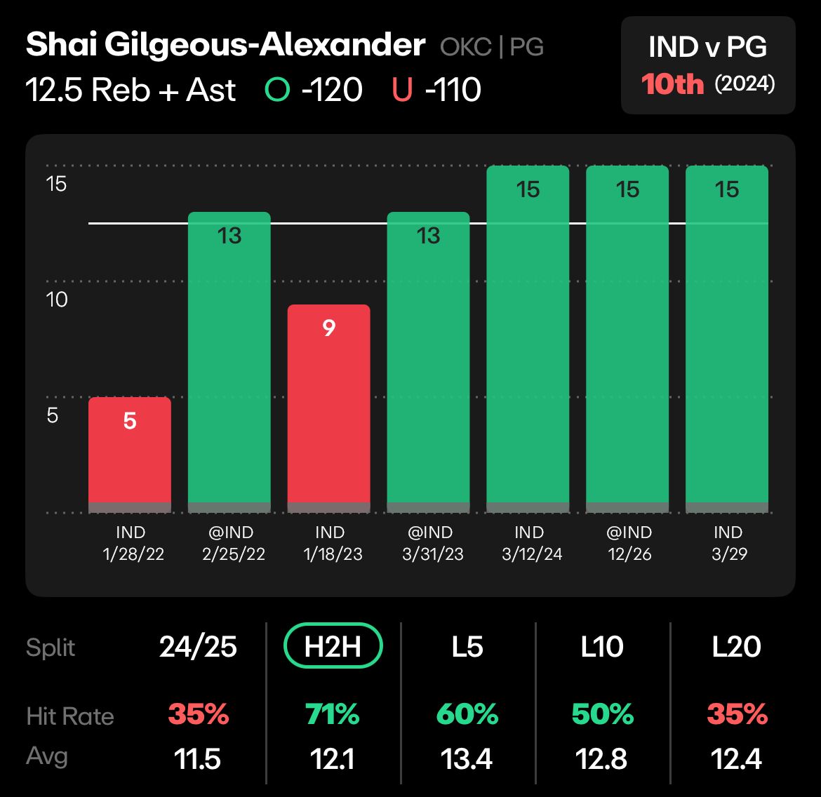 In both games versus Indiana this season, SGA had 15 rebounds and assists.