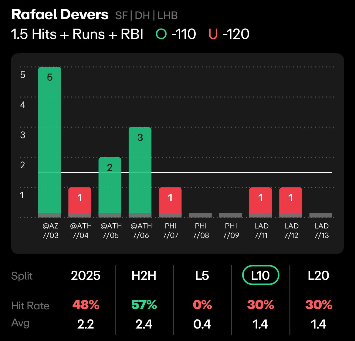 He closed out the second half strong: he had 2+ HRR in 5 of his last 6 games, with 14 hits, runs, and RBIs.