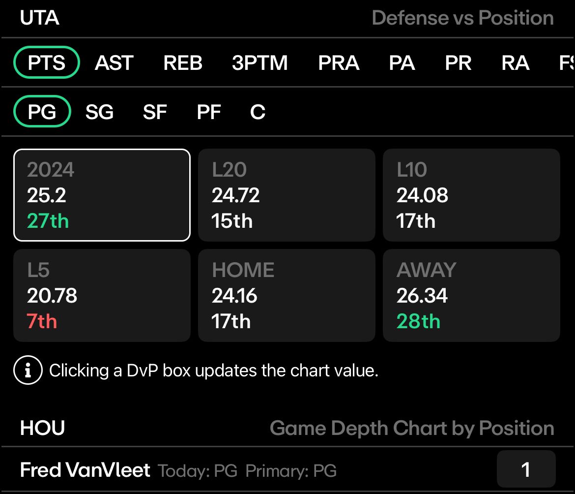 They rank 4th worst in point guard defense, allowing 25.2 points per game to the position. Hopefully, some of this matchup data will help you in your research today!