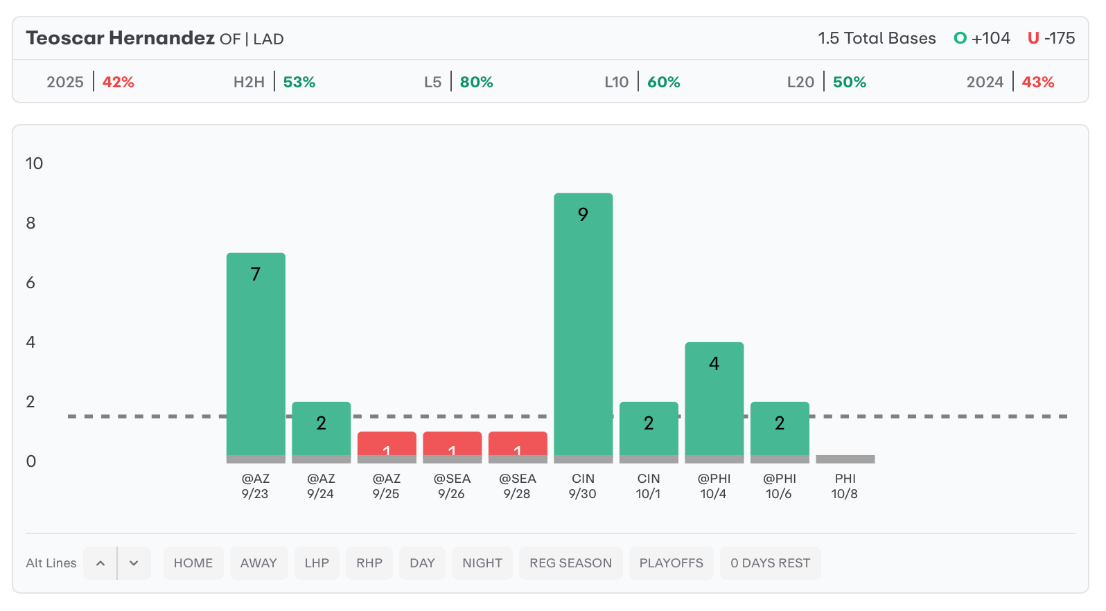 Teoscar Hernandez o1.5 Total Bases
