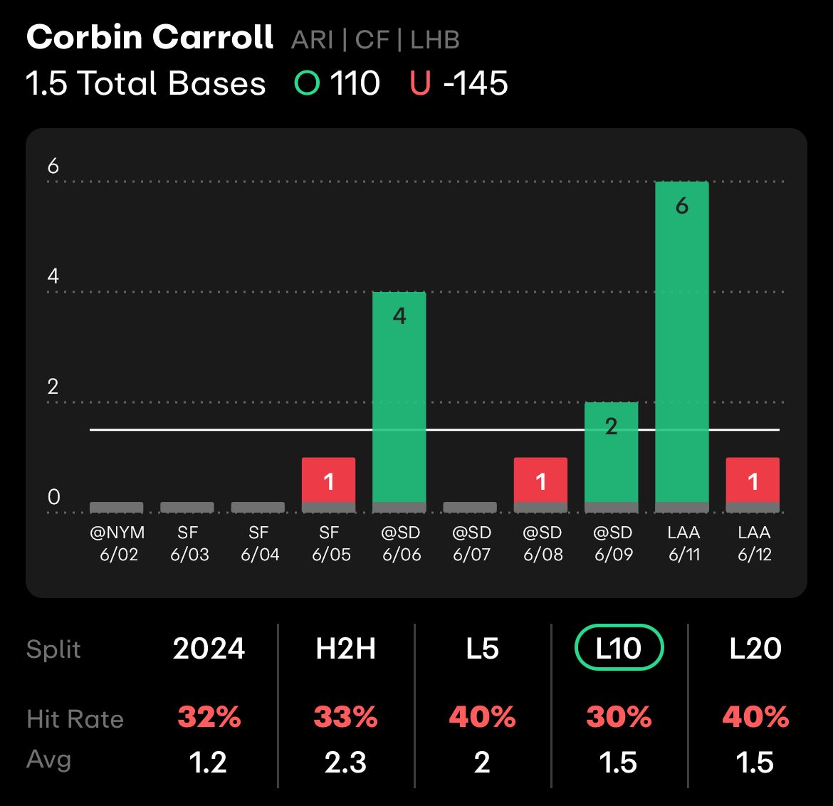 Carroll has had an awful second-year campaign, but he’s finally found a little stride lately. He’s hitting .417 over his last 7 days, with 10 hits in 24 at-bats.