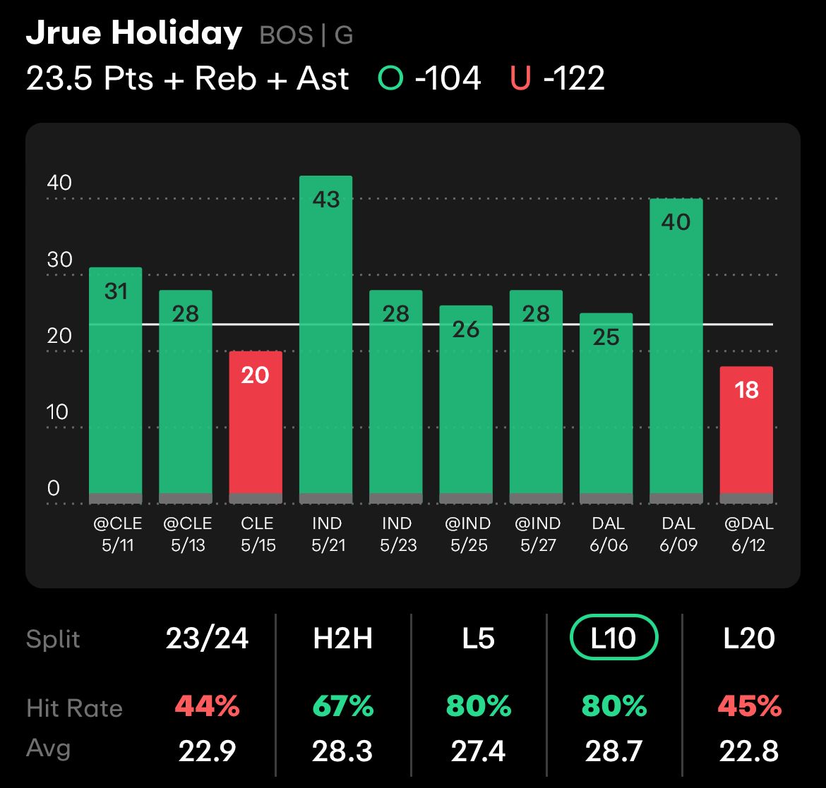 Jrue Holiday Over 23.5 Points+Rebounds+Assists ❌ He finished with 18.