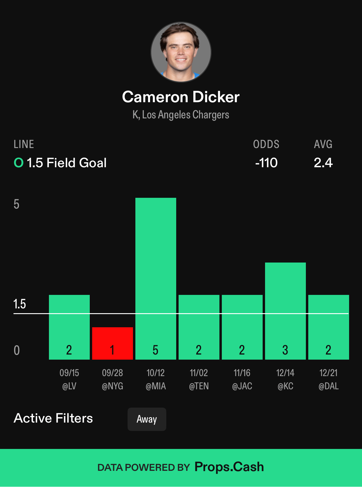 LAC @ DEN: Cameron Dicker, 1.5 Field Goals