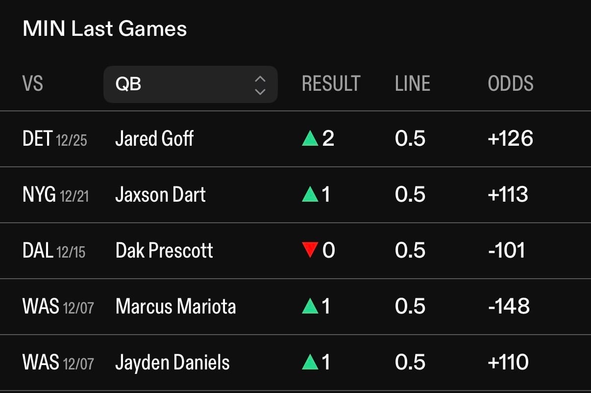 Recent QBs vs the Vikings
