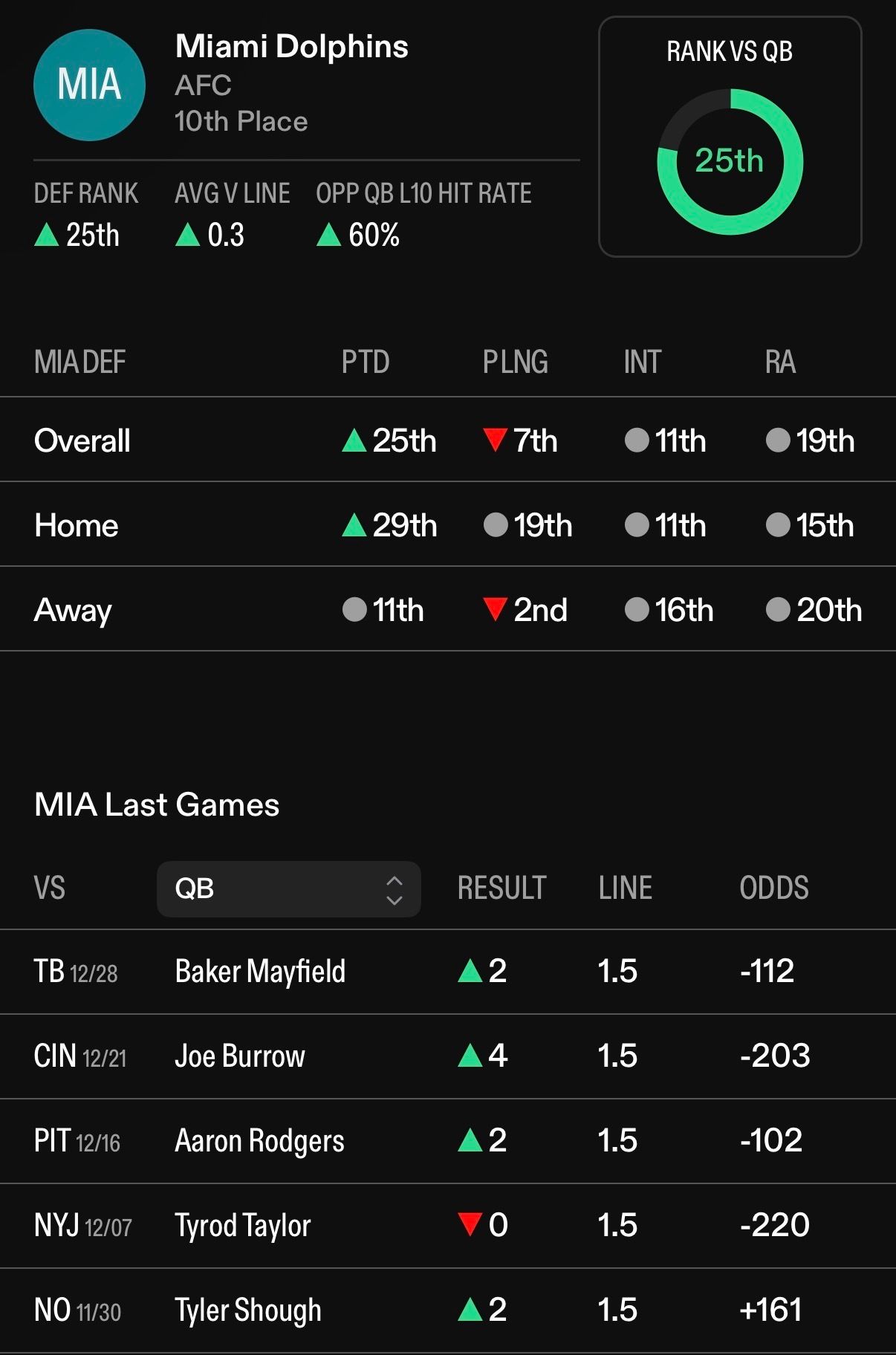6 of the last 8 QBs to play Miami have thrown for 2 or more passing TDs