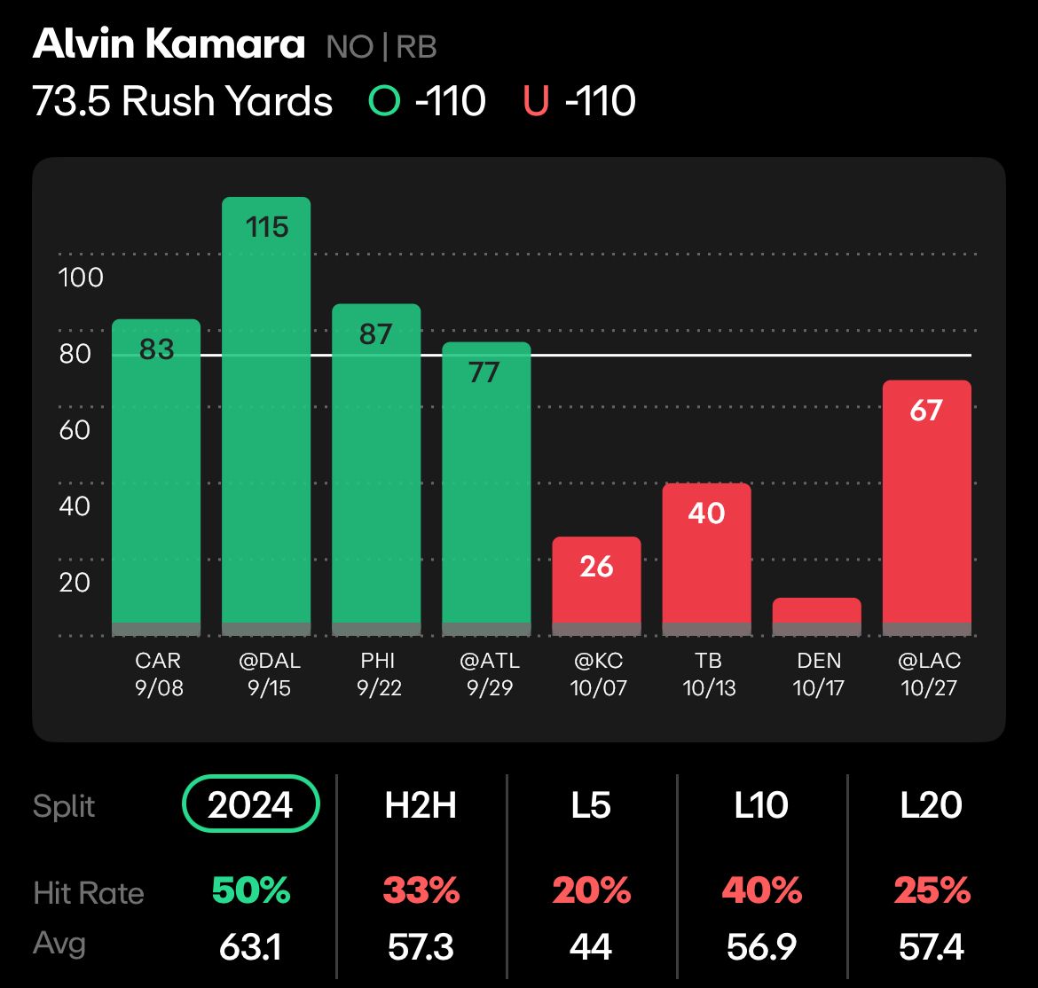 And Kamara is looking to break his short streak of two straight weeks without a touchdown against this dismal defense. Kamara has 7 touchdowns this year, but 4 of those came in week 2.