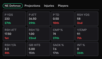 The Patriots aren’t throwing the ball all that much. Jacoby Brissett has only attempted 51 passes through the first two weeks, and the Patriots’ two running backs, Rhomandre Stevenson & Antonio Gibson, have combined for 74 attempts so far this season. The bulk of those have been Stevenson (56) but Gibson has still gone over this line in both games.