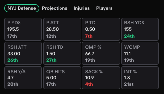 And the Jets rushing D has been, well, bad through the first two weeks. They’ve given up 229 total yards to three running backs this season, and they’re averaging 155 rushing yards allowed per game in the early going.