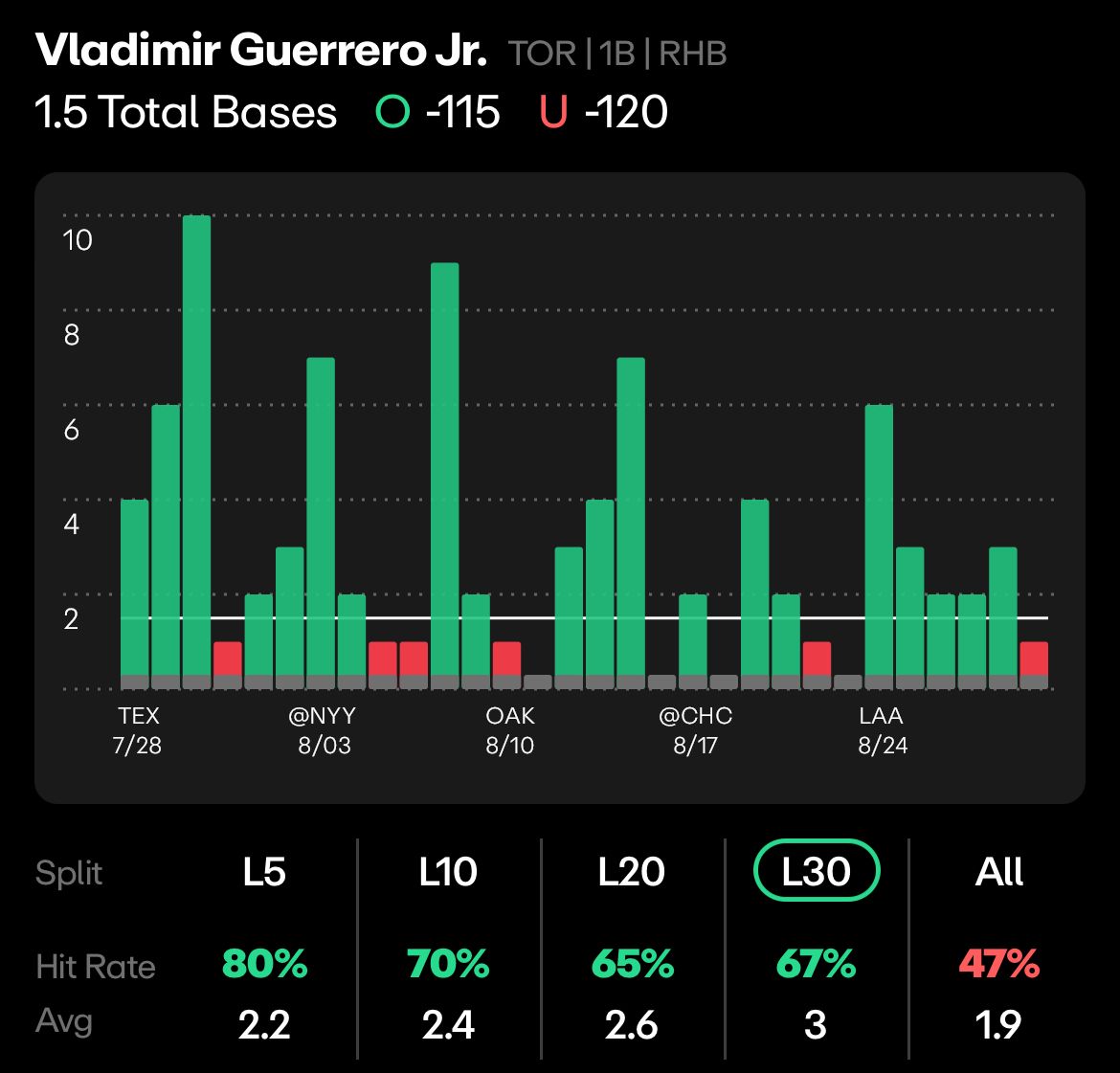 Vladimir Guerrero Jr Over 1.5 Total Bases