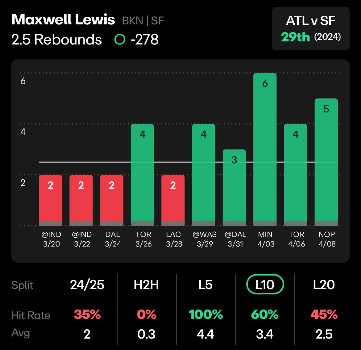 Maxwell Lews has played 15 minutes or more in 11 of his last 12 games, and 19 minutes or more in 7 of those 11 games. With that, he’s seen his rebound average double. This season he has averaged 2 rebounds per game, and in his last 10 games he’s averaged 4.4 boards.