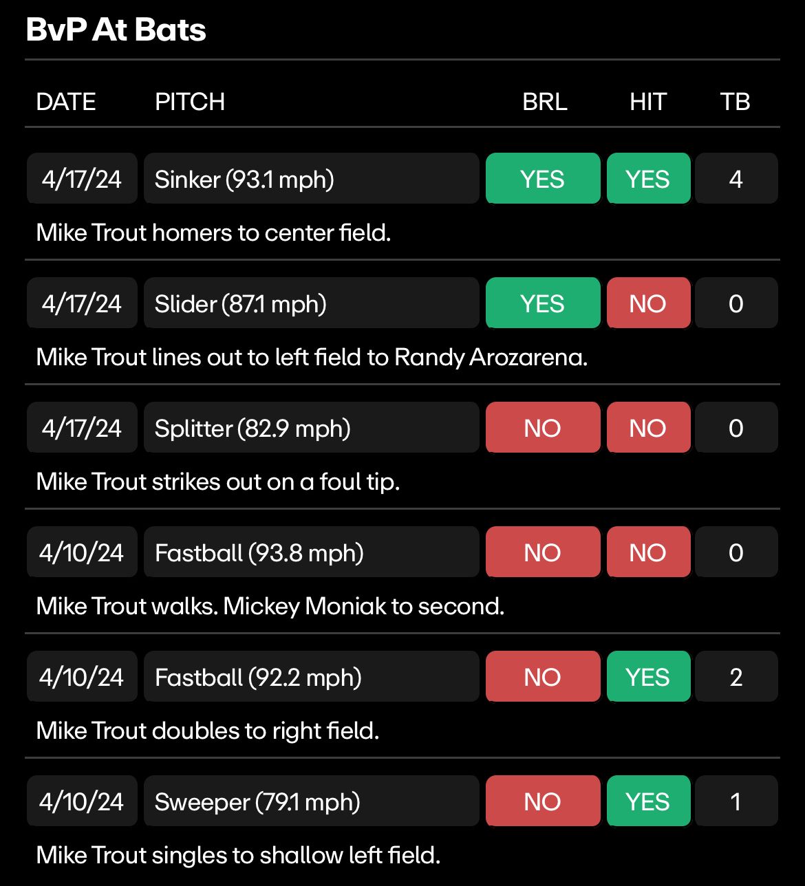 Mike Trout only has 6 plate appearances against Zach Littell, and in those 6 appearances, he’s smacked one home run and registered a .600 barrel percentage.