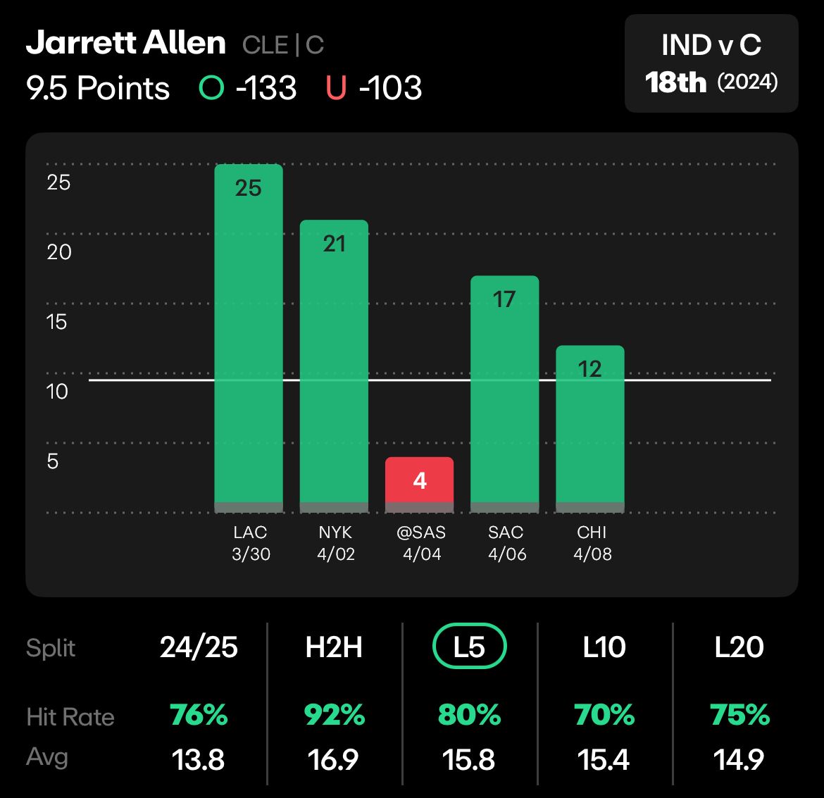 It’s a solid matchup for Allen - the Pacers allow 22.3 points per game to centers, and Allen has games of 11 and 16 points against them this season.