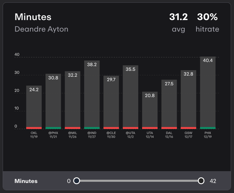 Let’s say for a minute Ayton gets off 14 FGA tonight. That’s a slightly arbitrary number, but we’re seeing a guy who just shot it 18 times facing a good opponent who he has a rich history against.