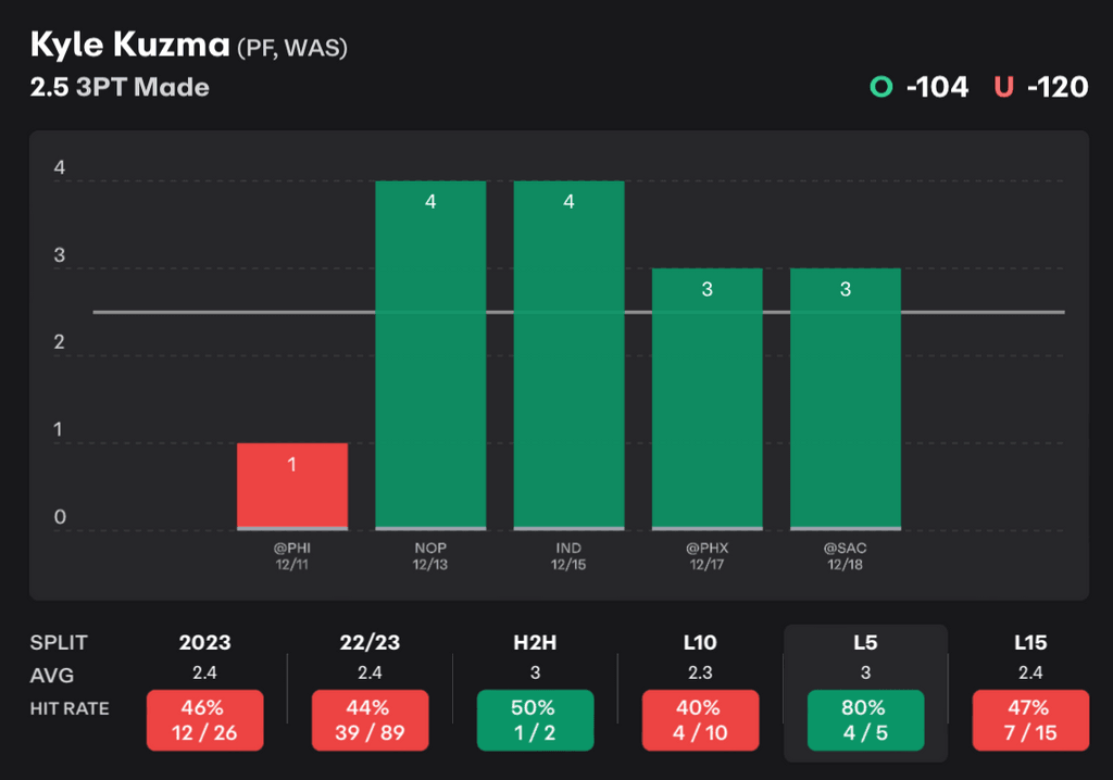 Kyle Kuzma 3PT Made