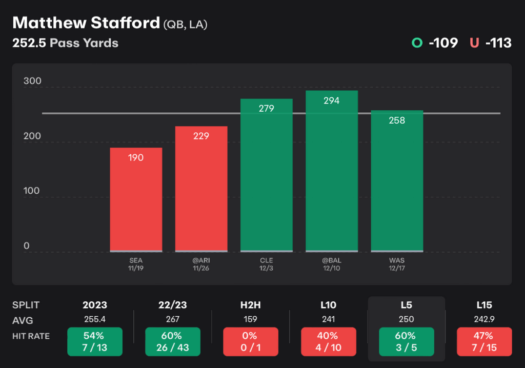 Matthew Stafford Pass Yards
