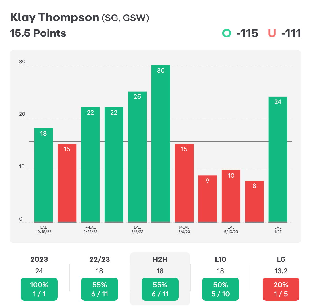 He’s not as consistent as he once was, but Klay can still cook. He’s surpassed this line in 58% of his games this season and in 3 of his last 5 games before the break.
