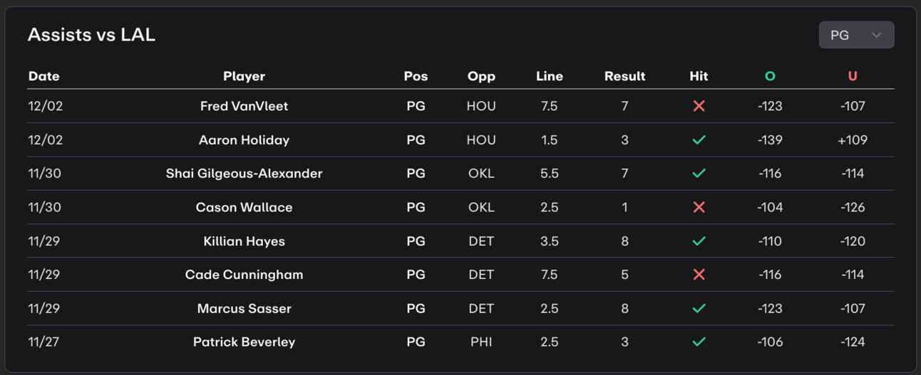 Put H2H data to use for your daily NBA props! Hop into the dashboard today and see what you can find.