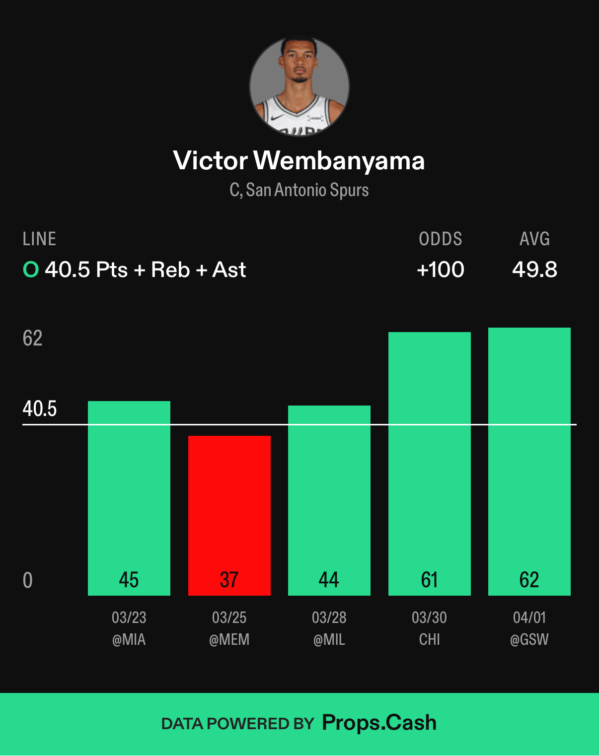 Wemby is playing for the MVP. Over his last 5 games, across several props, he’s cruising.