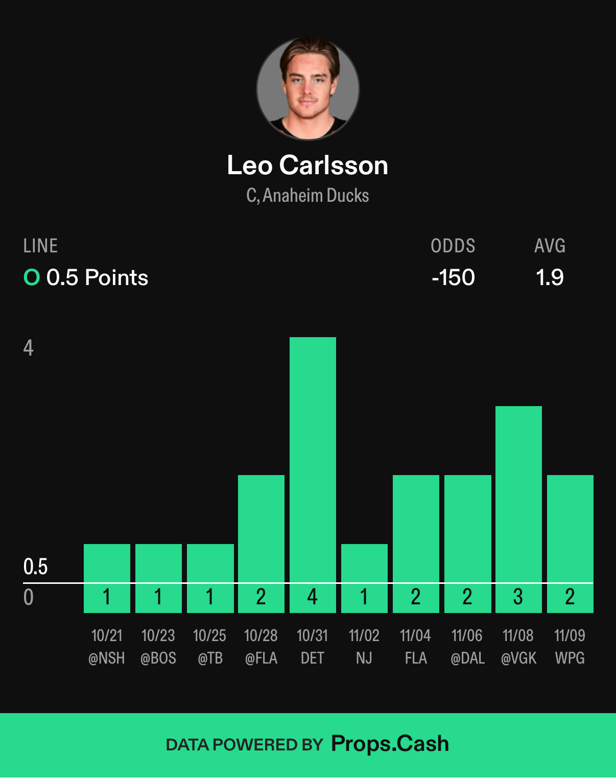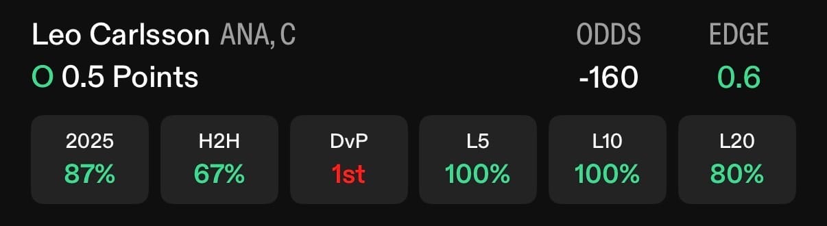 But even with all of that, we have to bring this to the newsletter. Carlsson has gone from a highly touted prospect to a guy struggling to find his footing in his first two seasons to a literal superstar early in the 2025 campaign. He has a point in 10 straight games, with 19 points total, and he has 2 or more points in 4 straight.