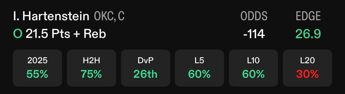 Hartenstein gets another great Edge in the NBA tonight, with an Edge difference of 5.4 PRA.