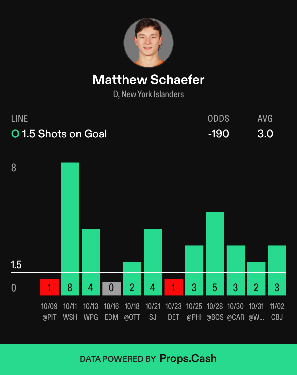 NHL Edge Trend #4: Matthew Schaefer, 1.5 Shots on Goal