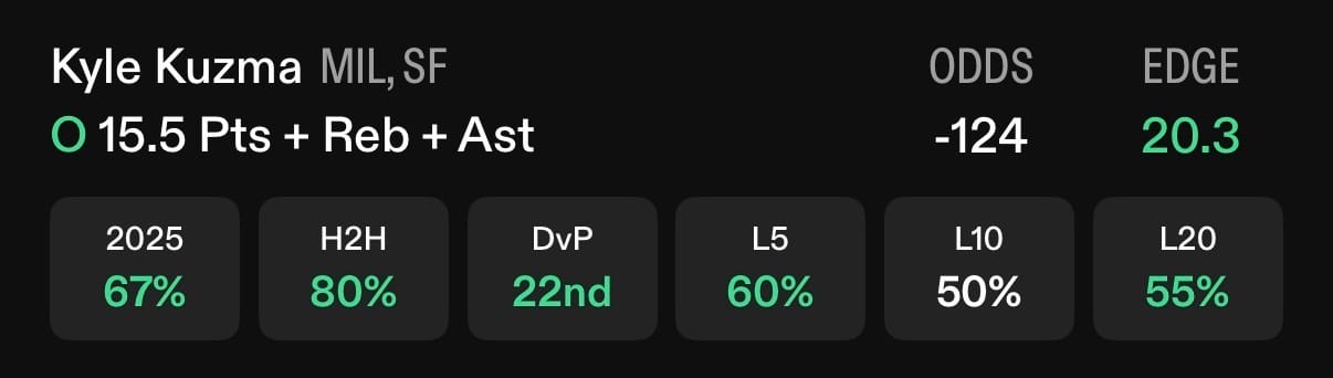 NBA Edge Trend #3: Kyle Kuzma, 15.5 PRA