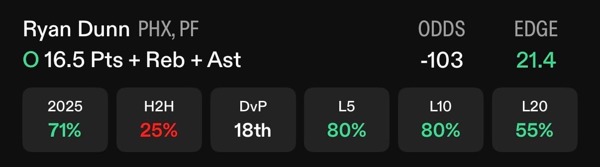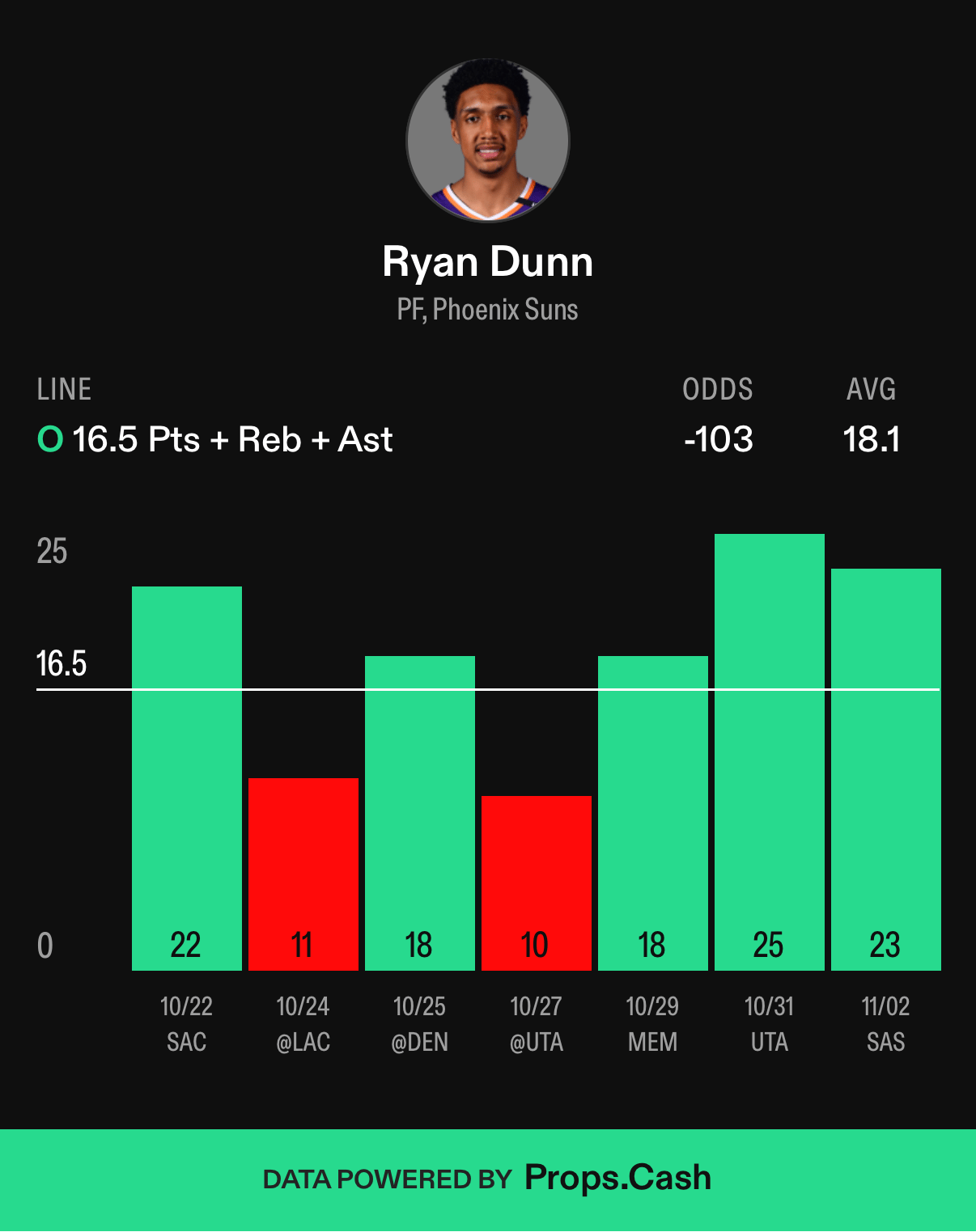 NBA Edge Trend #2: Ryan Dunn, 16.5 PRA