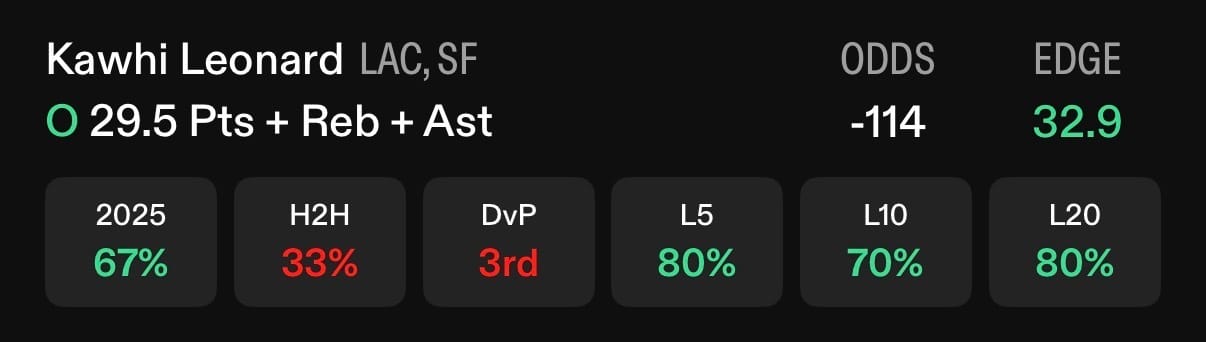 NBA Edge Trend #4: Kawhi Leonard, 29.5 PRA