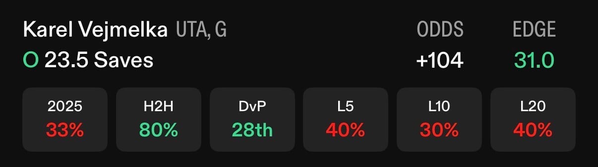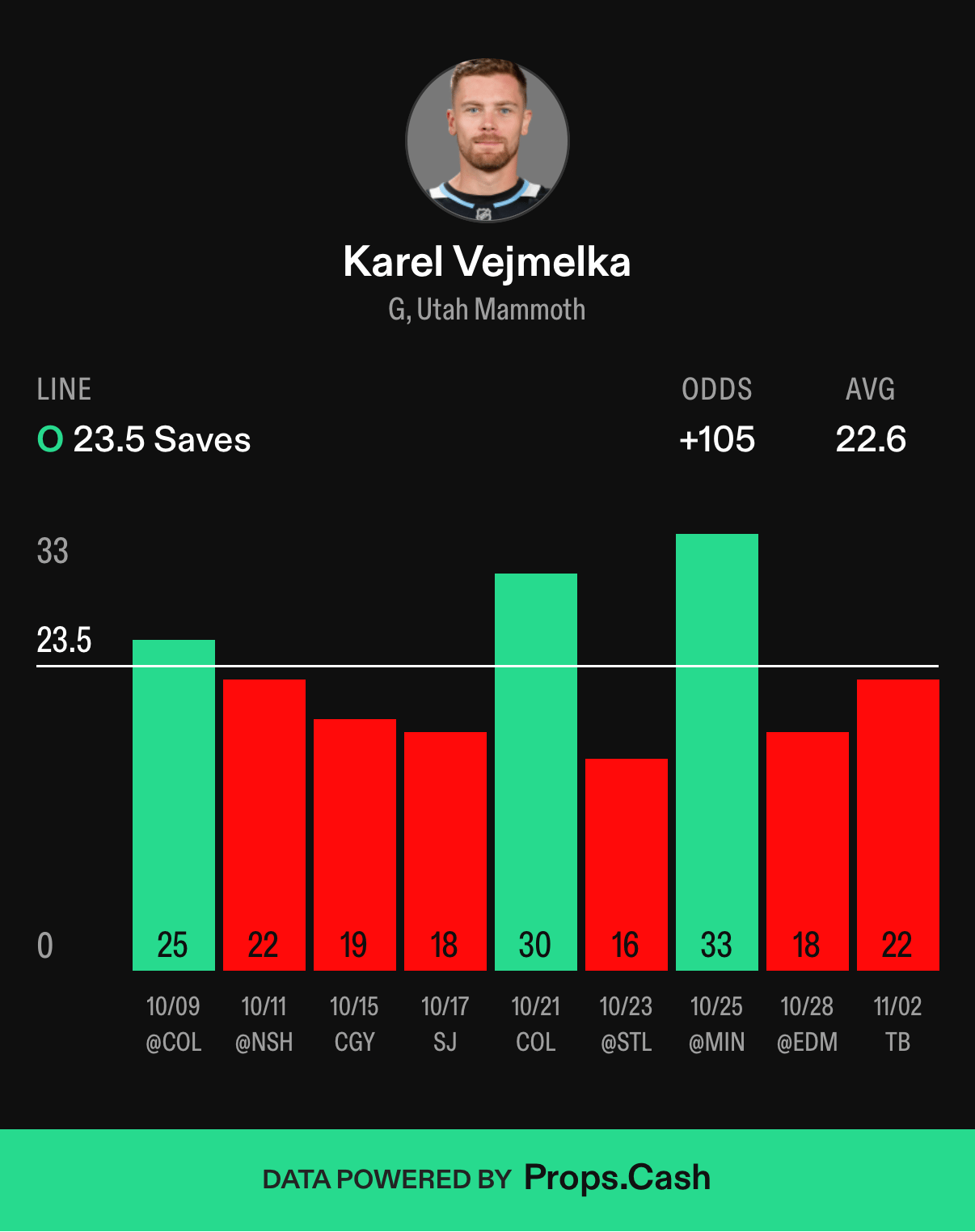 NHL Edge Trend #1: Karel Vejmelka, 23.5 Saves