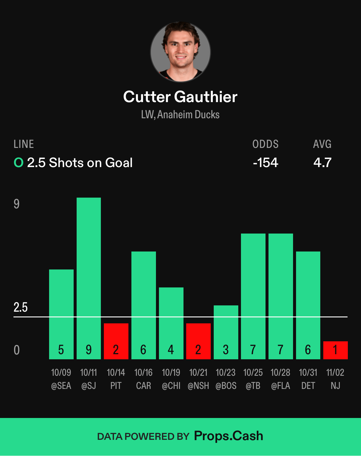 NHL Edge Trend #2: Cutter Gauthier, 2.5 Shots on Goal