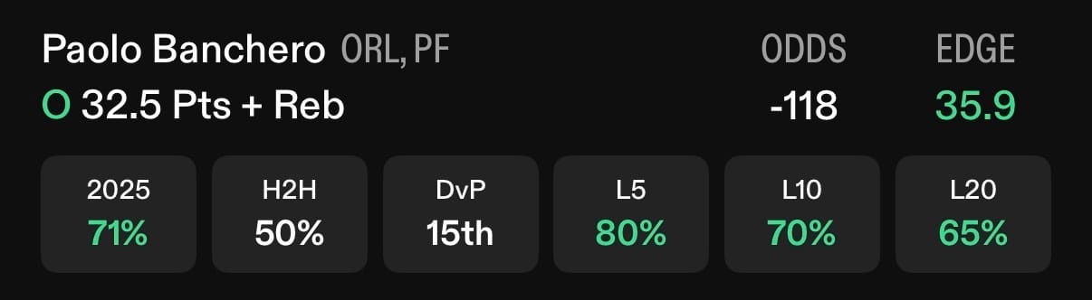 NBA Edge Trend #5: Paolo Banchero, 32.5 Pts + Reb