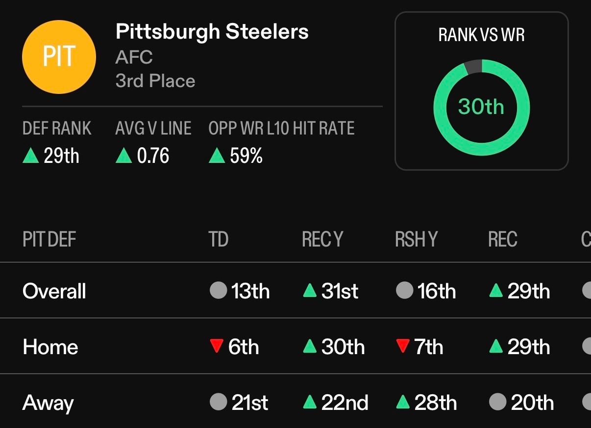 The Steelers’ defensive data - they’ve struggled containing wide receivers this season