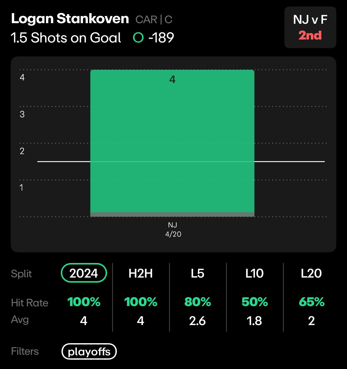 Logan Stankoven, 1.5 Shots on Goal