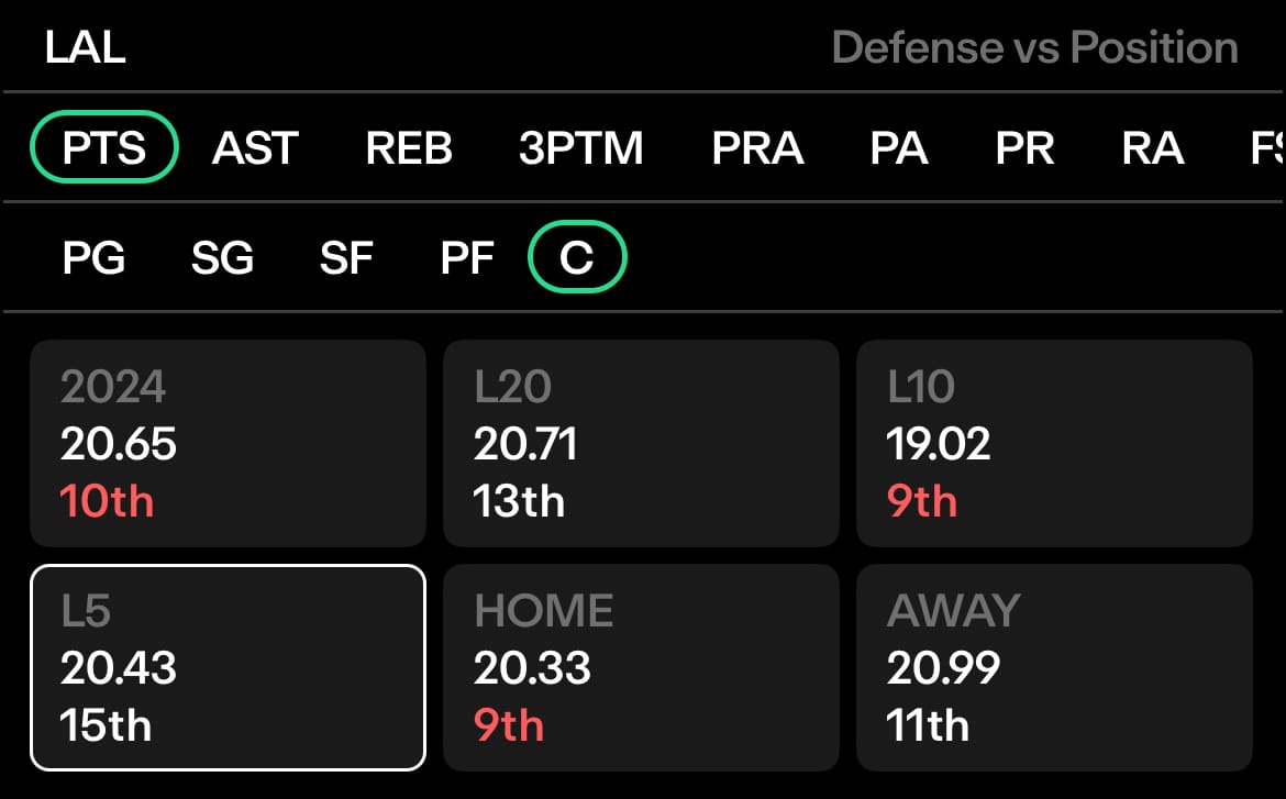 The Lakers defensive stats against centers