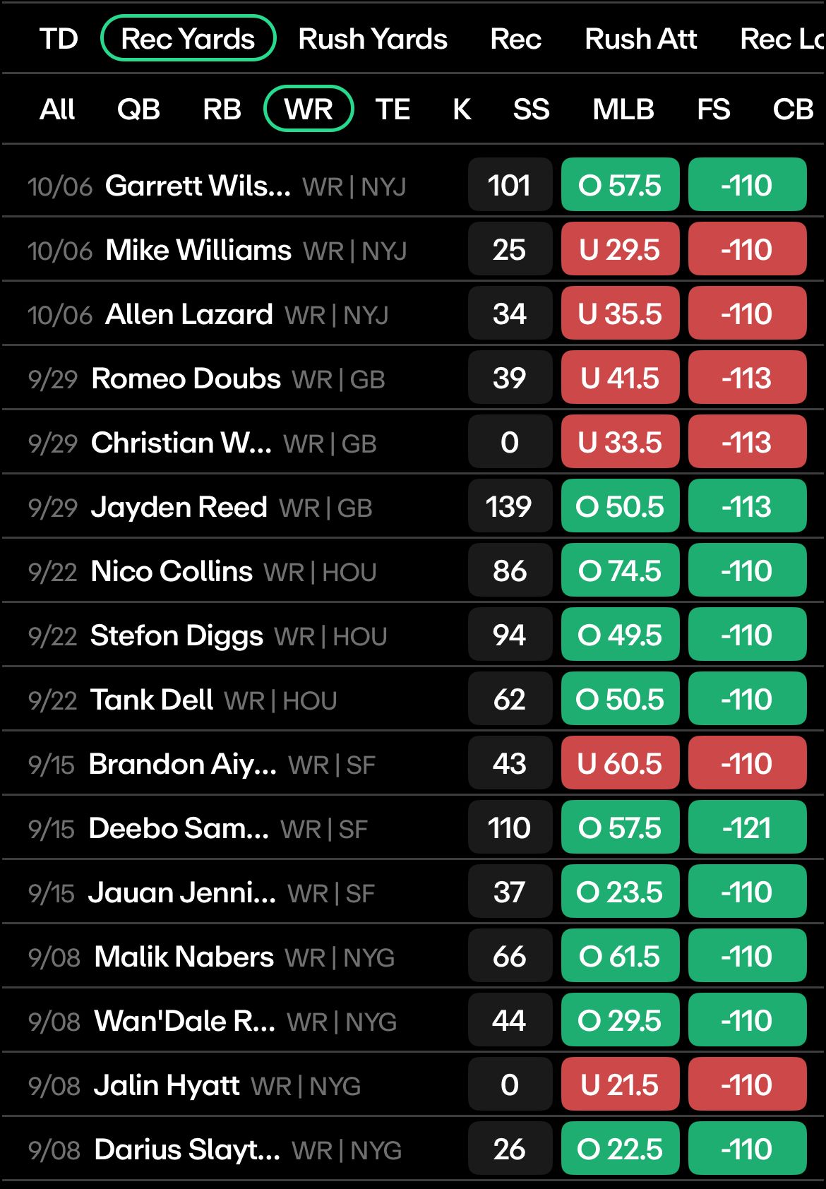 But like we said, this Minnesota passing defense gives up a ton. In 4 straight weeks, they’ve allowed an opposing receiver to rack up 90 or more yards against them, and in three of those weeks, at least one receiver has had 100 yards against Minnesota.