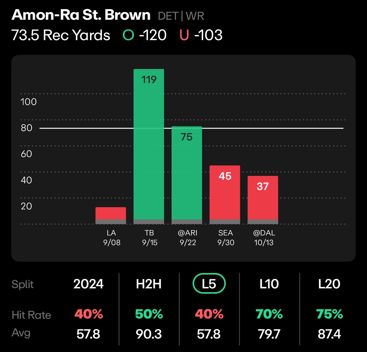 St. Brown’s last 5