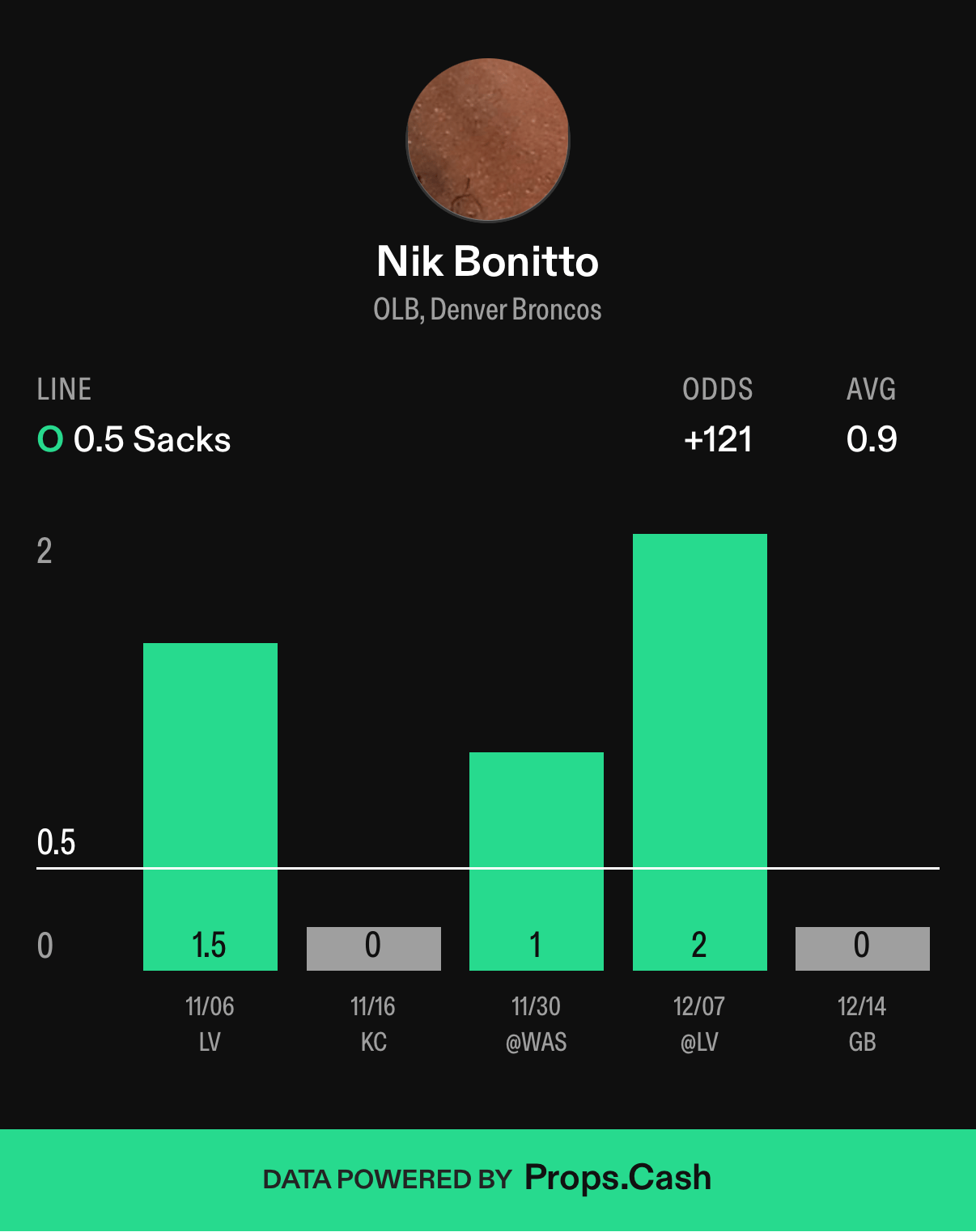Nick Bonitto’s sacks, L5 games