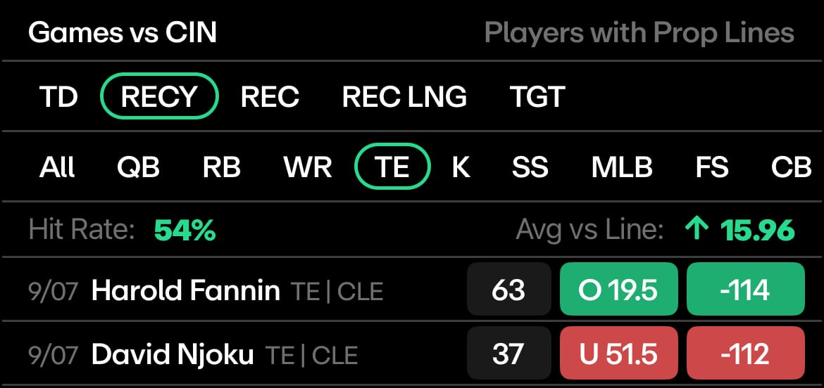 Last week, the two Cleveland tight ends racked up 100 yards on 10 catches, with Harold Fannin leading the way. And Strange started his year off hot: 59 yards, 4 receptions on 4 targets with a 79% snap rate, third highest in his career.