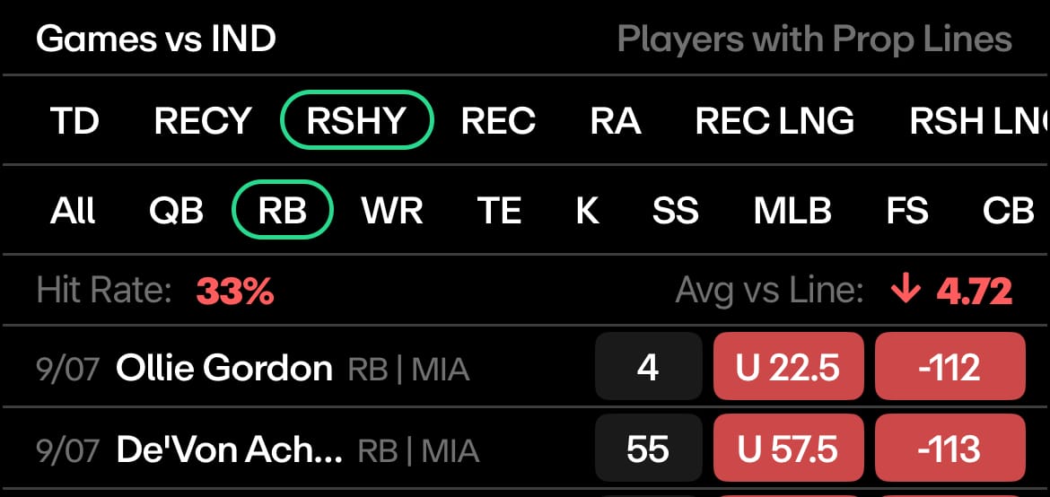 Maye’s week one, combined with the Dolphins’ week one, is encouraging enough for us. Want more data to make this feel good? 7 of the last 10 QBs to face Miami have gone over this number.