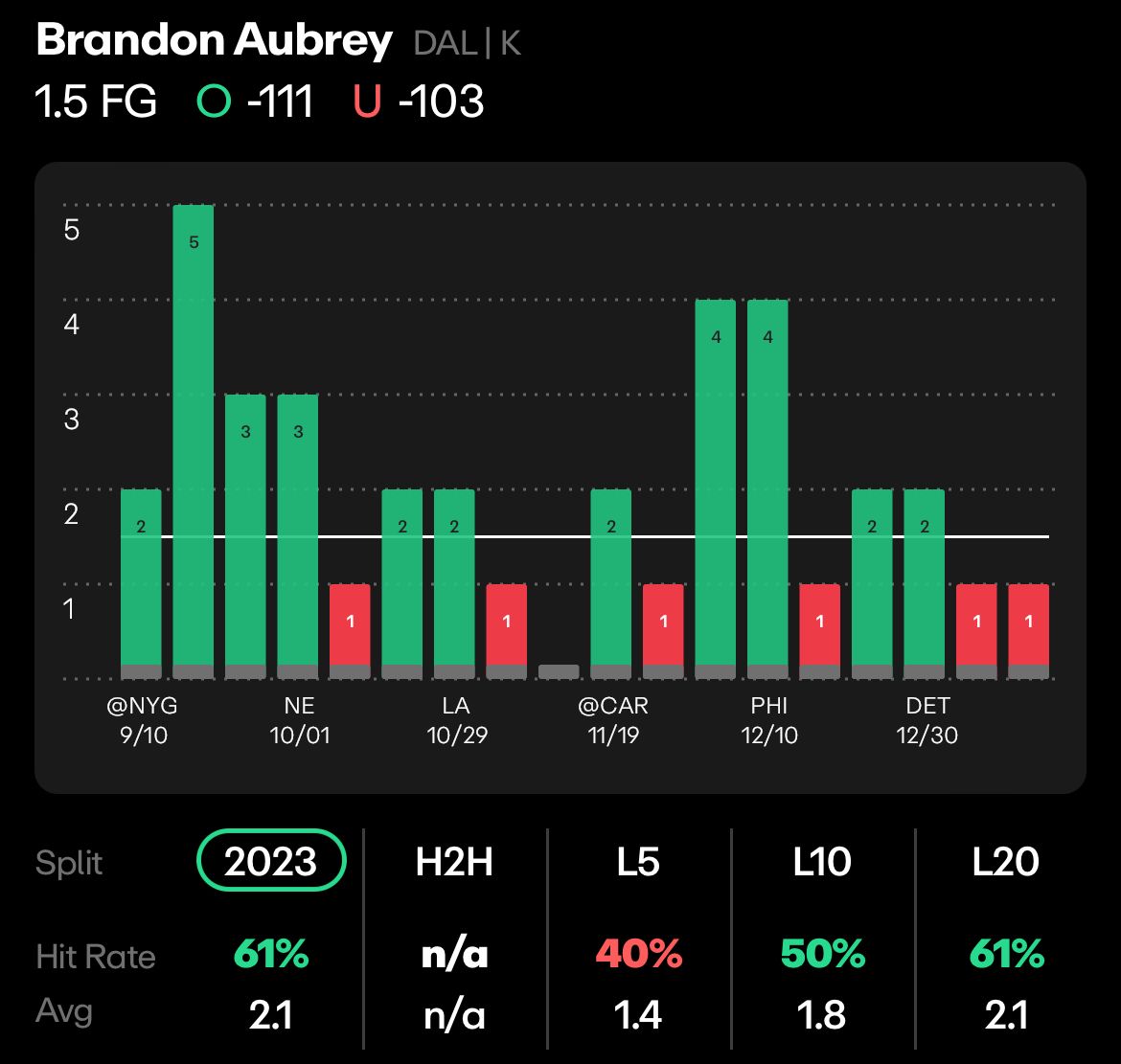 Browns vs Cowboys, Sunday 4 PM: Brandon Aubrey Over 1.5 Field Goals