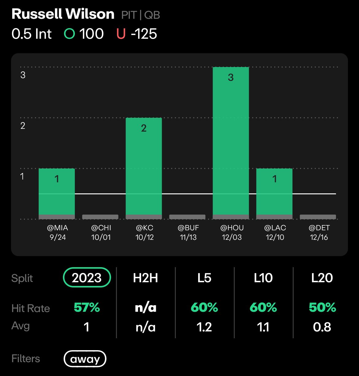 Falcons vs Steelers, Sunday 1 PM: Russell Wilson/Justin Fields Over 0.5 Interceptions